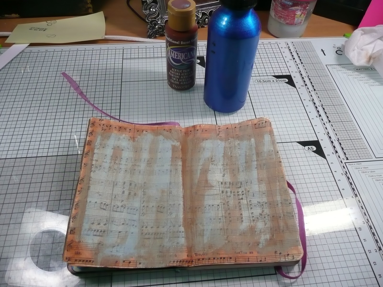 Step 2: Glue the music paper in the journal and let the glue dry.
